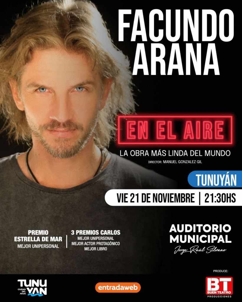 Como parte de esta misma línea de trabajo, el Auditorio Municipal se prepara para recibir próximamente a Facundo Arana, quien presentará su multipremiada obra En el Aire. Será el próximo viernes 21 de noviembre y las entradas ya pueden adquirirse por boletería del Auditorio o a través de tuentrada.web.