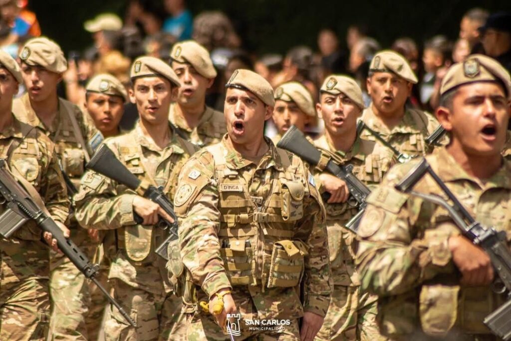 En la presentación protocolar de tropas, el Teniente Primero Emanuel Juárez realizó la salutación formal al Mayor Alejandro Recalde, segundo jefe del Batallón de Ingenieros de Montaña 8 “Barreteros de Cuyo”, y al Intendente Municipal. La histórica calle principal de la Villa Cabecera volvió a convertirse en el escenario tradicional donde la banda militar y el paso de las instituciones recordaron la gesta emancipadora y el valor de la libertad en nuestra historia local.
