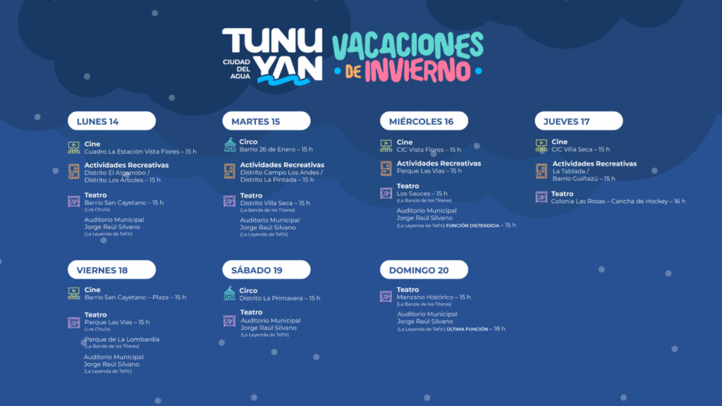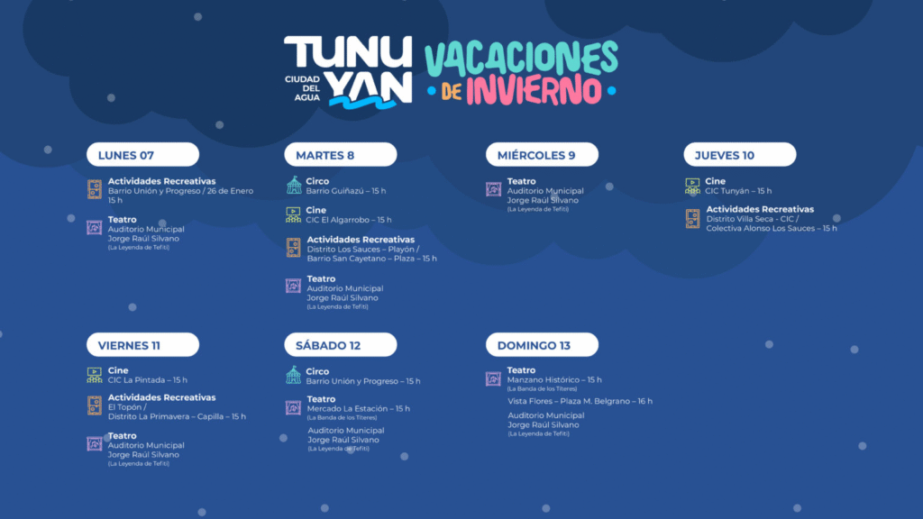 Este invierno, Tunuyán se transforma en un gran escenario de cultura, juego e inclusión. ¡Te esperamos para disfrutar juntos unas vacaciones inolvidables!