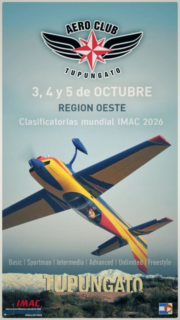La IMAC (International Miniature Aerobatic Club), organización que regula la acrobacia aérea de aviones a control remoto a escala, donde pilotos compiten realizando complejas maniobras en categorías definidas llegará a Tupungato.