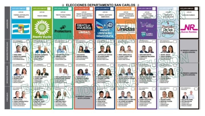 La Justicia Electoral oficializó las boletas que se utilizarán en Mendoza para las elecciones 2025 legislativas, del 26 de octubre, una jornada clave en la que también los tres departamentos del Valle de Uco (Tunuyán, Tupungato y San Carlos) votarán por concejales.