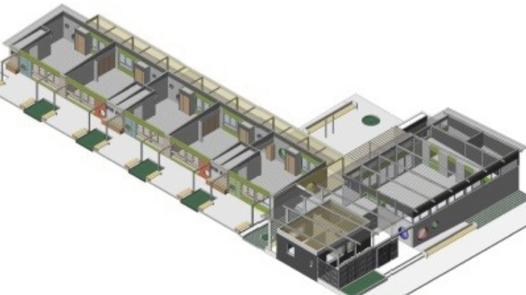 Para la construcción se dispuso utilizar un sistema constructivo industrializado con estructura metálica y cerramiento tipo steel framing, conforme los requerimientos estructurales de la zona.