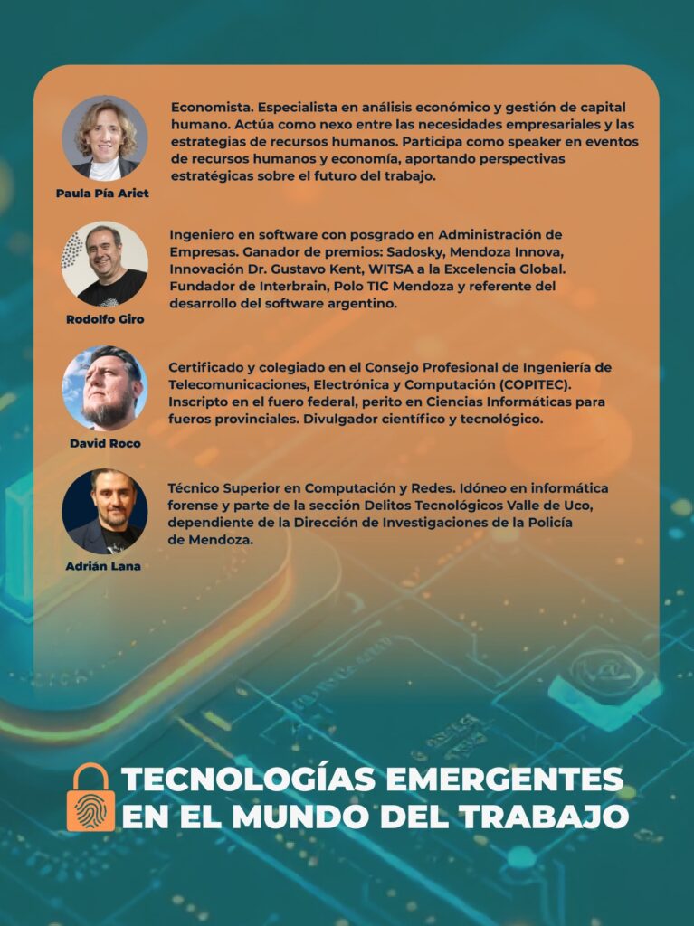 - Rodolfo Giro, ingeniero de software con posgrado en Administración de Empresas, reconocido por distintos premios de innovación —como Sadosky, Mendoza Innova y WITSA—, fundador de Interbrain y actor clave del ecosistema tecnológico mendocino.