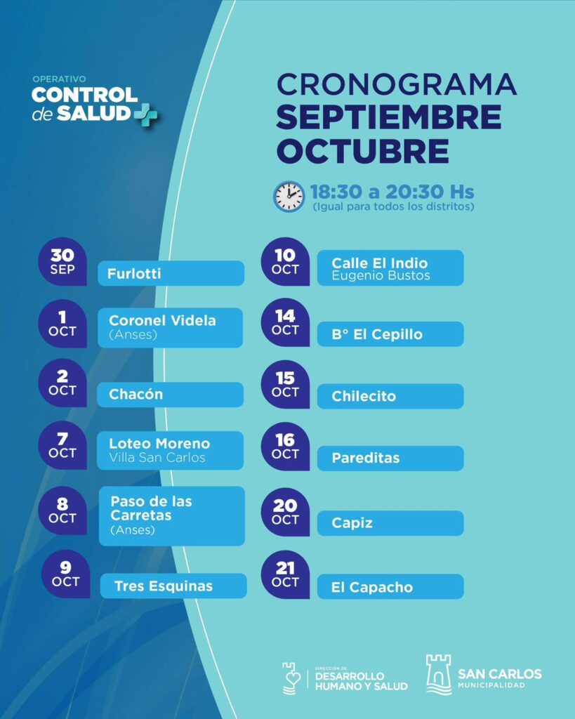 Estos son los días, lugares y horarios en donde se ubicará el operativo de salud en octubre: